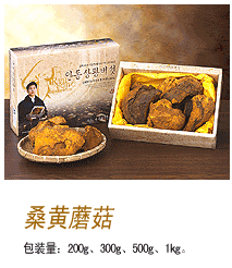 桑黄是从中国由来的单词而使用桑黄蘑菇的说法,在韩国则称之为‘木质泥蘑菇’。大多数人认为桑黄蘑菇是生长在桑树的蘑菇。但事实上,桑黄蘑菇自生自长于栖息在高山地带的野桑树、刺榆、洋槐、橡树、栗树。等阔叶树的树干和树枝等枯木中。桑黄蘑菇是难以繁殖的非常珍贵的单子菌类的多年生蘑菇,学名为Phellinus linteus。桑黄蘑菇主要寄生在生长数十年的枯木上,是非常难得和十分昂贵的蘑菇。桑黄蘑菇的模样,刚开始是泥状、成长以后的形状为树根中伸出舌头的样子,所以也称作‘树舌’。刚开始是黄色的泥状,而到冬天后停止生长,黄色部分成为泥状,等到第2年重新成长为黄色的多年生蘑菇。