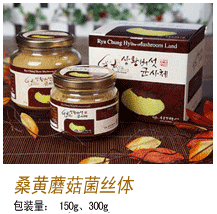 本产品是把庆北生物产业研究院(刘忠贤药用蘑菇)所生产的桑黄蘑菇菌丝体制造成可以方便地服用而进行粉末化的产品,是可以用温水服用或添加到大酱菜、油煎食品(与面混合)等各种料理内食用的产品,其中含有大量的桑黄蘑菇有效成份。