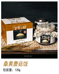 该产品是与庆北生物产业研究院(刘忠贤药用蘑菇)启明大学共同开发的产品。与桑黄蘑菇饭相比,该产品具有更高的桑黄蘑菇子实体含量,并含有珍贵的松口蘑菇菌丝体。黄金级别桑黄蘑菇饭,是在糙米中加入刘忠贤药用蘑菇农场所生产的桑黄蘑菇子实体和桑黄蘑菇菌丝体,以便在做饭时方便地做成桑黄蘑菇饭。